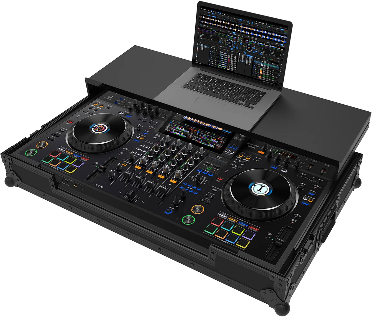 Az AlphaTheta XDJ-AZ kontrollerhez tervezett, 9 mm rétegelt lemezes Zomo flightcase a Night Style Edition mélyfekete kiadásban – kihúzható laptoptartó polccal és levehető fedéllel a gyors hozzáféréshez.